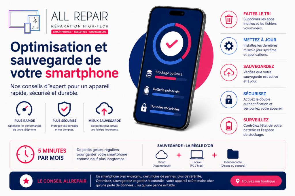 Optimiser, sauvegarder et entretenir régulièrement son appareil coûte bien moins cher qu’une perte de données… ou qu’une panne évitable.