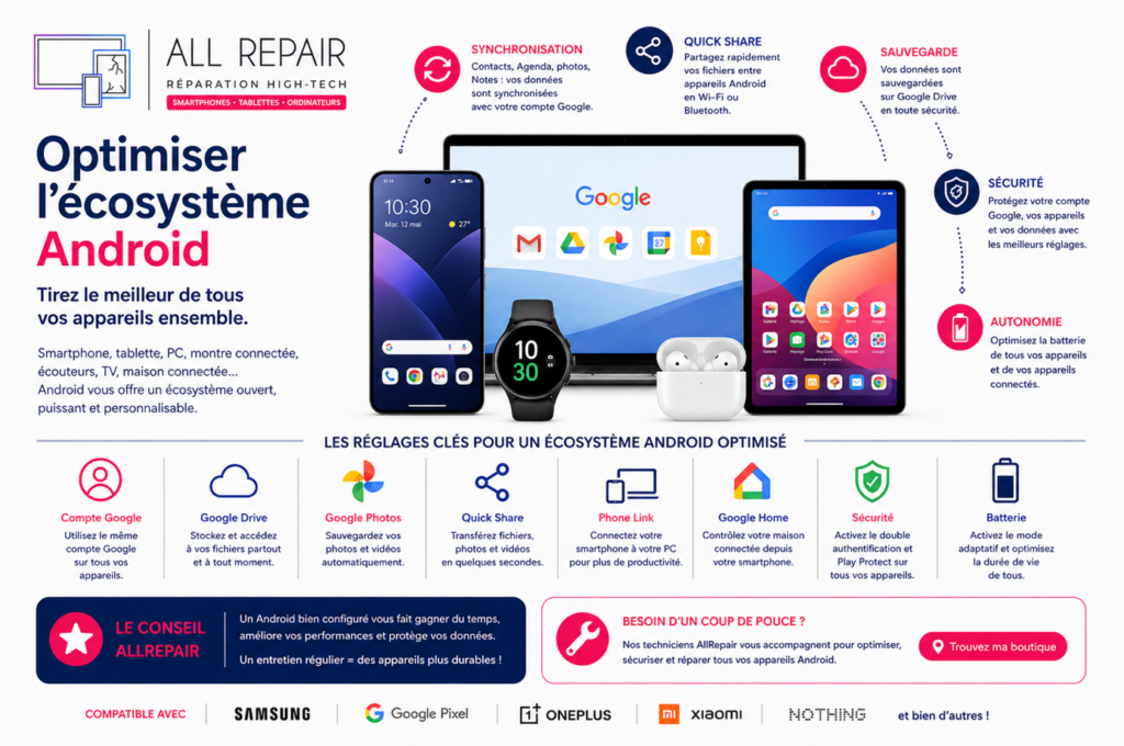 Voici notre guide expert pour optimiser votre écosystème Android, améliorer votre productivité, sécuriser vos données et profiter pleinement de la puissance de vos appareils.